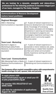 Indus Hospital Jobs: Indus Hospital is looking for dynamic, energetic, and vision-driven professional for the following position to become integral part of our team manage by the Indus Hospital.